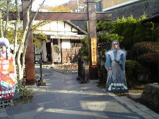 石段の湯から降りたすぐに関所があり、ここで旅の方に写真を撮ってもらった。が、この方、軽自動車で道の駅を渡り歩いている人で、いく先々でいろんな人の名刺をもらっては旅行記に書いているらしい。ひょんなところで知り合ったわけだが、なんと旅先の出会いを大切にしてる人らしく、後に手紙を送っていただけるとのこと。私は名刺をもらい、そしてその方に住所を名前を書いて渡す。よく名刺を見てみると、なんと地元が横浜だった。…すぐ近くではないか。「横浜かぁ、近いなぁ」と思っても、神奈川県で会うのと、伊香保で会うのとでは全然感覚が違う。まさか伊香保で神奈川県民に会えるとは思わなかった。