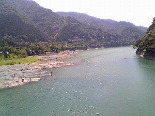 ちょうどそこは小さな沢が流れ込んでいるところで、水遊びを楽しむ人がいた。私たちも裸足になって水に入り、疲れた足を癒していた。足だけでも、水につかればかなり涼しく感じるものだ。