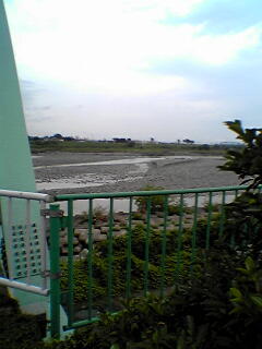 富士川は突然現れた。少し急になったと思ったら、目の前に鉄橋のようなものが見えてきた。富士川だった。その橋の向こうには山が見える。