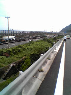 1号線に戻り、安倍川を越える。その途中、キャリアと荷物の間に挟んでいた板が落下するというトラブルがあったが、幸い後ろを走っていたko-1が気づき、事なきを得た。荷物を後ろに積んでいるという関係上、落し物については気付かないことが多いので、今回は助かった。