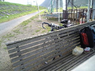 東岡山に入り、10:30頃だろうか、突然電話が鳴った。後ろを走っているはずのDに停止する合図をして、停車。すぐさま携帯を見ると…Dから電話だった。そして後ろを振り返ると、かなり後方にいた。