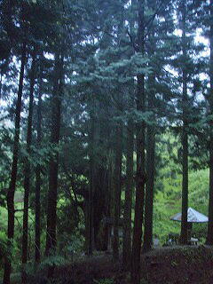 砂利道を歩いて1分ほど、目の前に大きな杉が姿を現した。