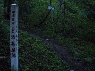 途中、旧甲州街道はその昔、多くの人が往来していたことを感じさせる茶屋跡を二つ見かけた。甘酒茶屋と桃の木茶屋の跡だった。
