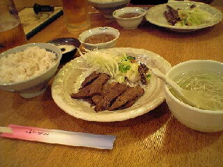ん〜、牛タンはうまかった。刻みネギと一緒に食べるらしいが、これがまたおいしかった。さらに、ホテルでもらった案内の中にビールがタダになるクーポンがあったので、それも一緒に注文した。一日運動した後の一杯はまた格別だった。わずかにほろ酔いで、店を後にする。