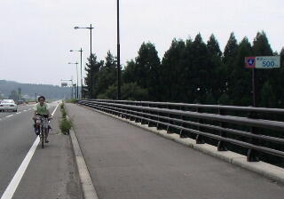 ここから、さらに北上し、花巻へ。途中、建設途中でまだ部分開通と思われるバイパスを通っていく。4号線を右折して朝日大橋を渡り、さらに銀河大橋を渡る。その途中で、東京から500kmのキロポストを発見。かなりの距離を走ってきたんだなと実感した。花巻空港インターには11:45、走行26.8kmであった。