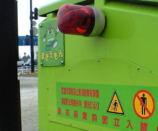 さて、ここから別に分かれていた4号線と再び合流した。と、その交差点で見覚えのある緑色の機械を発見。そう、昨日4日目に一関で見た凍結防止剤自動散布機「まきえもん」であった。まさかこんなところで発見できると思ってもみなかったので、今度こそは止まって写真を撮った。
