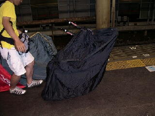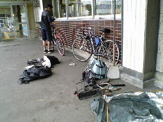 駅前に自転車を止めて、早速積み込みのための解体作業に取り掛かる。