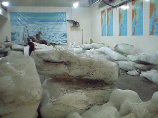 -(左)流氷館 (右)中の様子 流氷が保存されている-