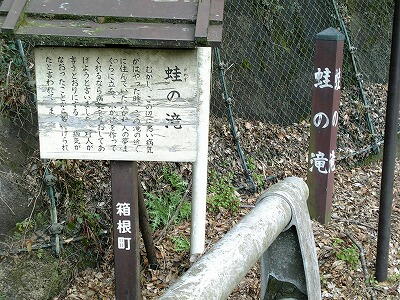 途中、道路の脇に「蛙(かわず)の滝」という滝を見かけた。何でも、昔この辺りに重い病気が流行ったときに、近くに住む蛙が人の夢枕に立って、木陰を作ってくれるなら病気を治してあげようと言い、村人がその通りにしたら病気が治ったということから、このような名前がつけられたそうだ。