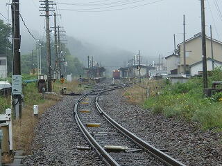 さて、肝心の列車はいつ通るのだろうかと、持っていた時刻表をめくる。…お、実はちょうどいい時間帯。といっても、昨日旅館にいるときにある程度通過時間を見ていたので、計画通りといったところではあるが。