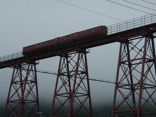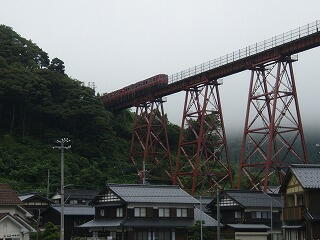 香住から+100m程の坂を越えて鎧へ。間もなくすると、有名な余部鉄橋が遠くに見えてきた。