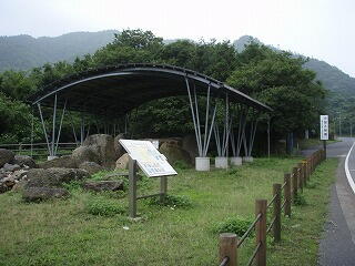 さて、大きく上った先に、お土産屋などの観光施設が見えてきた。ようやく到着である。ここで14:35、走行は50kmであった。付近には観光客向けに広い駐車場も整備されていた。