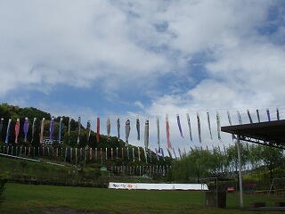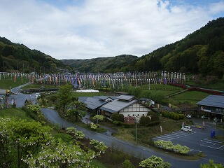 -(左)道の駅「南きよさと」 (右)下からこいのぼりを見る-