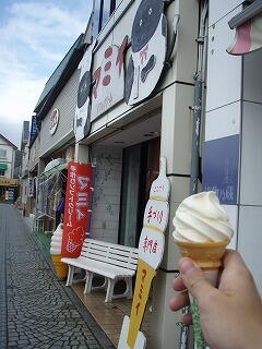 駅で写真を撮った後、駅前のソフトクリーム屋マミイでチーズソフトクリームを食べる。