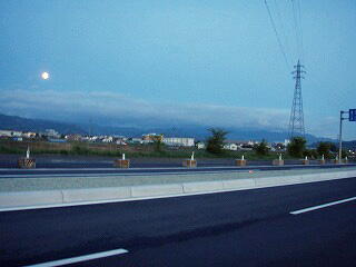 -(左)今日は満月 (右)佐久市へ入る。周りは薄暗くなってきた-